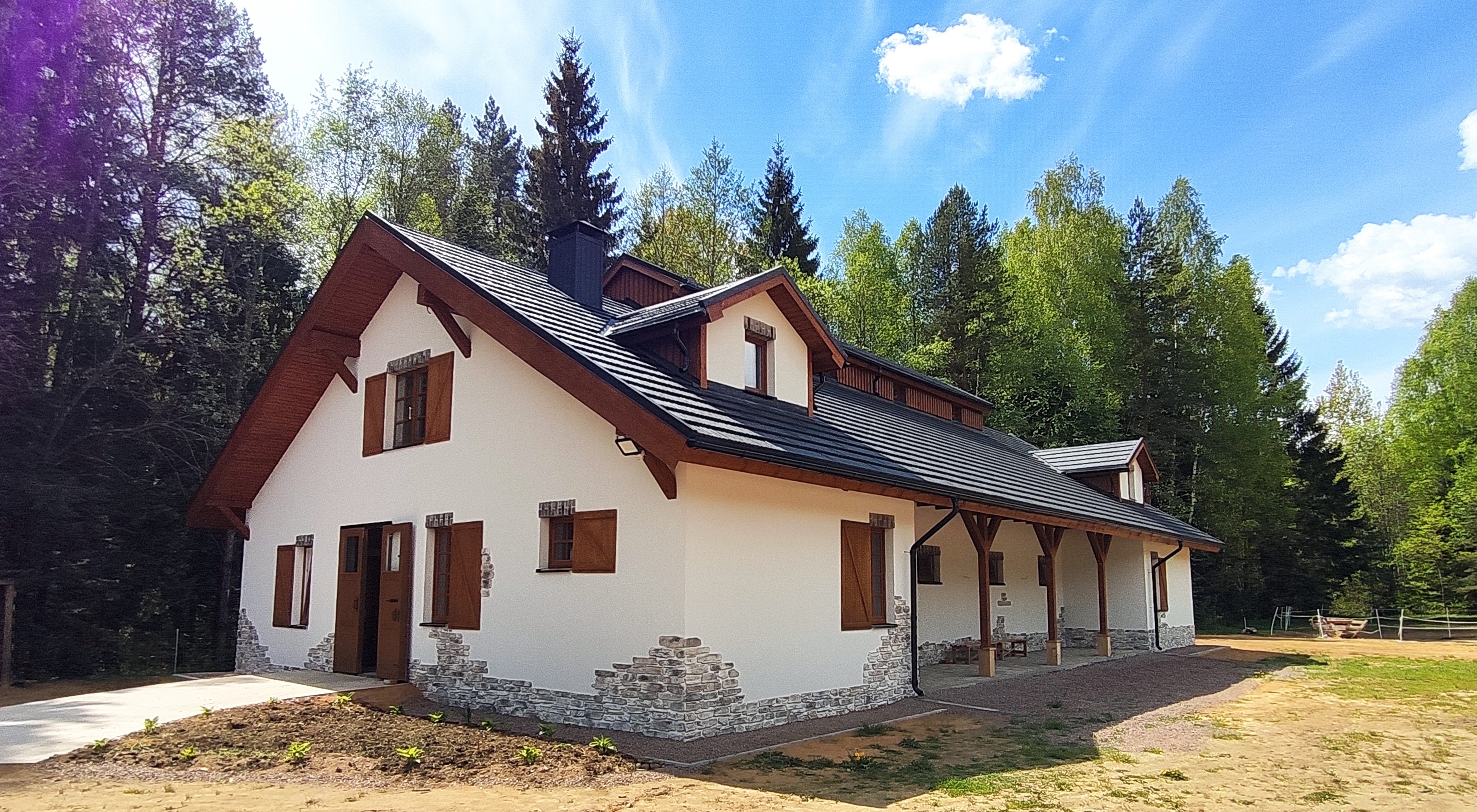 Введено в эксплуатацию здание частной конюшниСтроительство зданя велось методом несъемной опалубки торговой марки МДБ -монолитные дома быстровозводимые